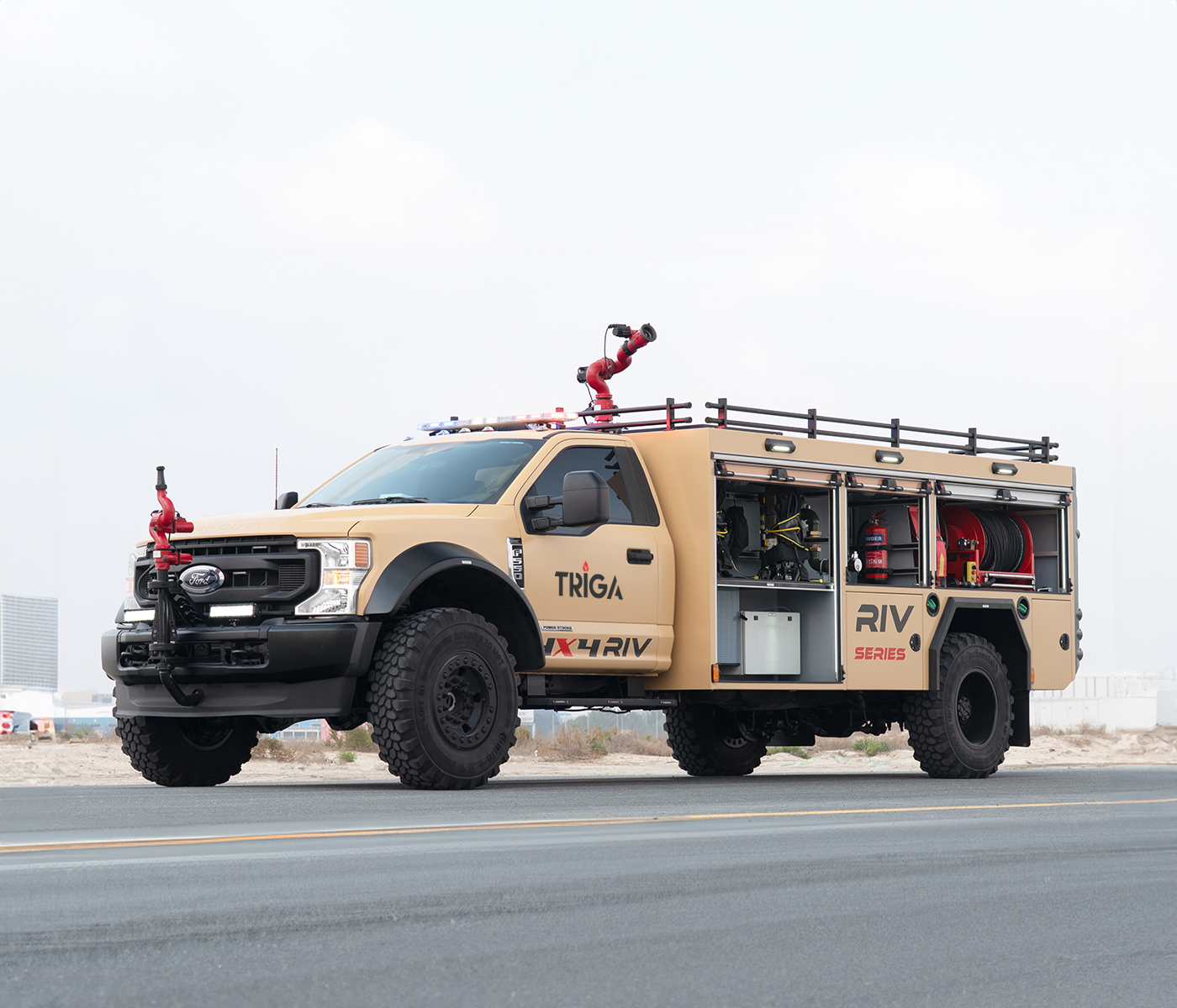 NAFFCO’s latest FORD RIV equipped with high-tech features is designed for quick rescue and extinguishing fire even in the most stressful situations. Offering impressive extinguishing in high-pressure performance and include Wide range of firefighting accessories and rescue tools.